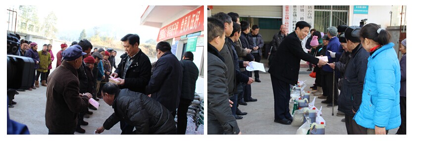 为资助边远山区贫困家庭度过一个温暖的春节,2014年1月13日上午,金堂县工商联名誉主席、金阳集团董事长邓诗维先生再次与市、县工商联领导一行驱车近100公里,到金堂县最偏远的云合镇三桥村对50余户贫困家庭进行了春节慰问,为他们送去了慰问金、菜油、鲜肉、东北大米等物资,表达了金阳集团的一份爱心。(图为慰问现象部分照片)